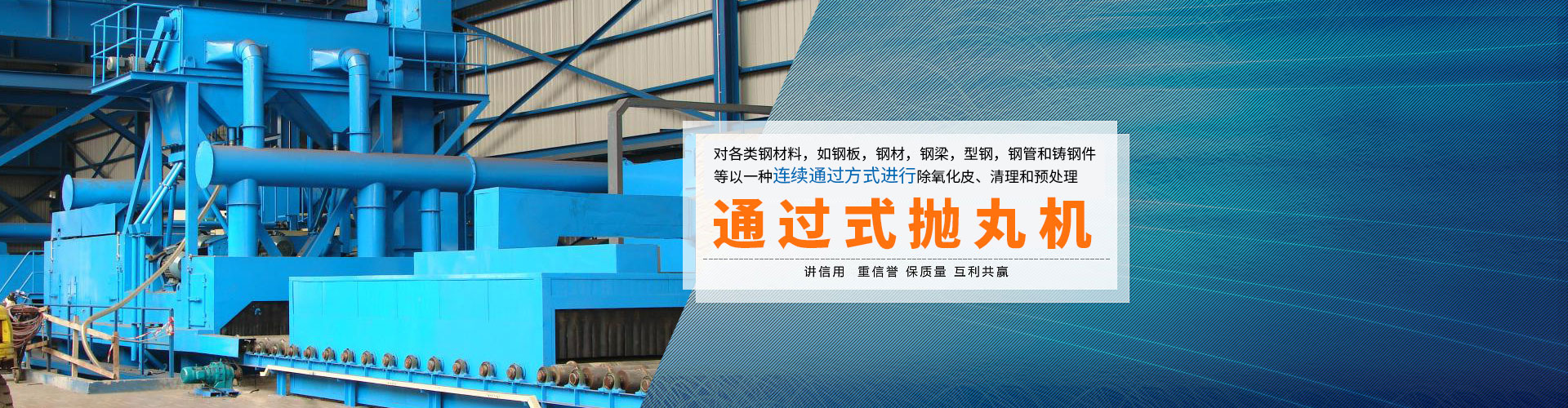 鹽城市大豐嘉恒機(jī)械有限公司所生產(chǎn)的拋丸機(jī)設(shè)備已獲得國內(nèi)多家知名企業(yè)的認(rèn)可通過式拋丸機(jī)在江浙滬地區(qū)得到一直好評,形成規(guī)模銷售! 本公司堅(jiān)持“以融現(xiàn)代科技,盡真誠服務(wù),求共同發(fā)展”的質(zhì)量方針;以“精心、精誠、精實(shí)”的工作精神真誠的希望與各位朋友,中外客商發(fā)展友誼,建立長期的業(yè)務(wù)合作伙伴。衷心歡迎來我公司指導(dǎo)、考察、洽談、以求得共同輝煌。